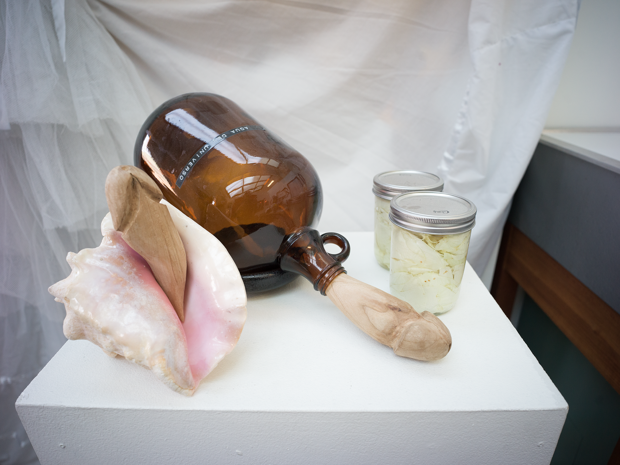 “The sociality of gay culture,” Conch and carved wooden penis.