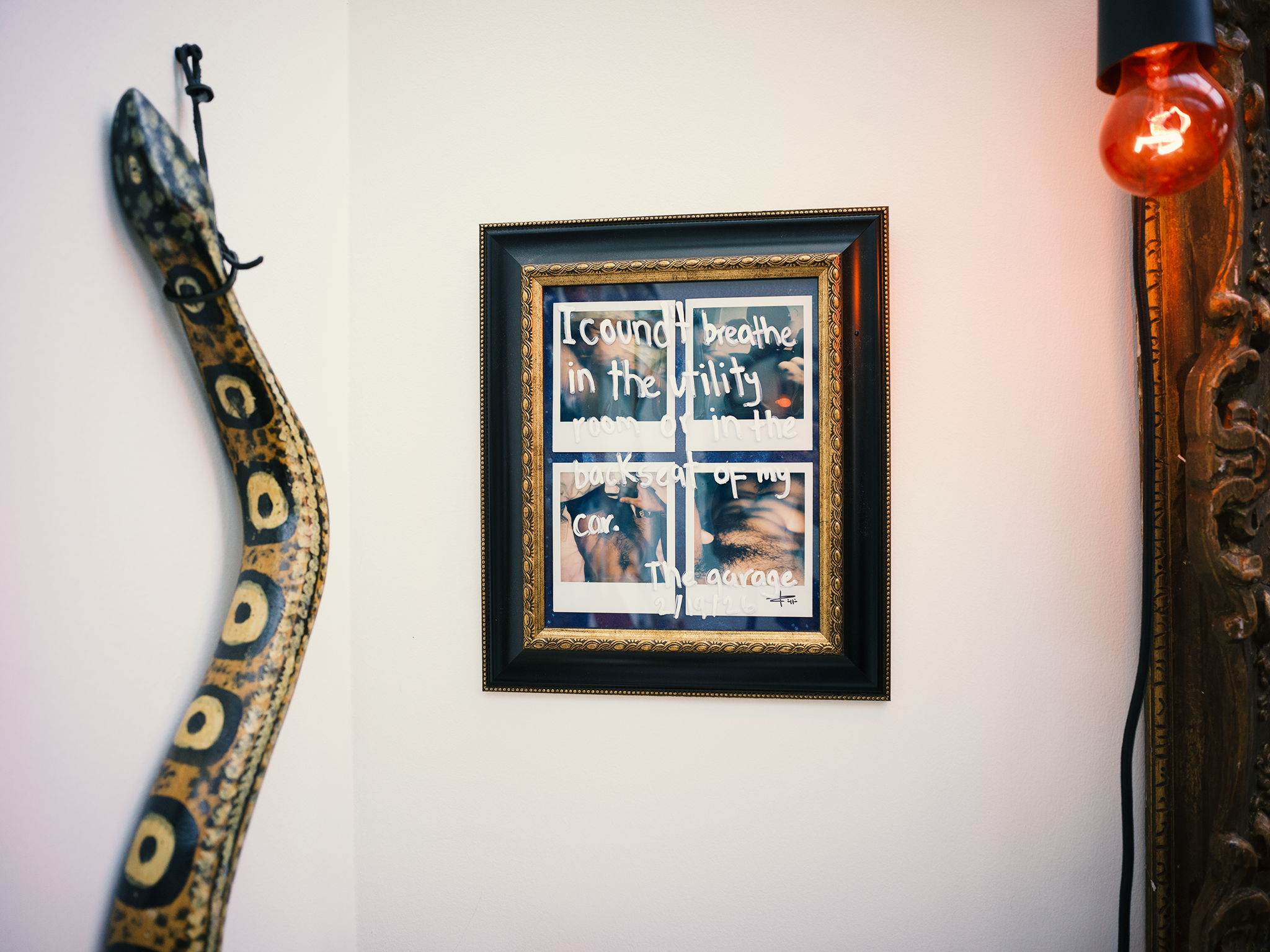 Moving forward, I am interested in how my experiences can inform works that engage with what is prohibitive, permissive, or shocking for those seeing them for the first time, i.e., two men kissing, holding hands. I am interested in documenting the residue of such experiences in objects and installations.
